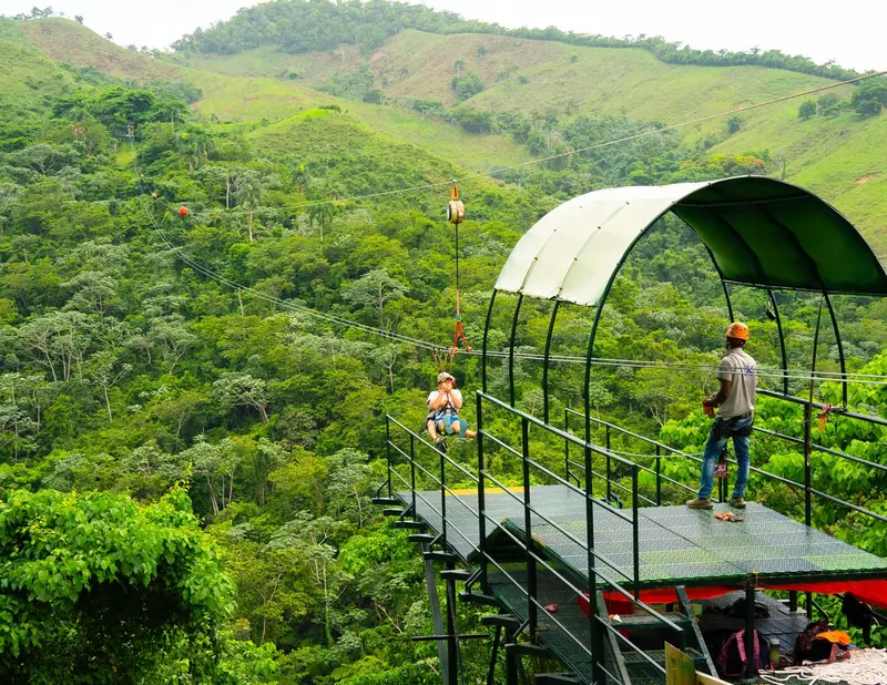 Viva una experiencia auténtica y completa en el corazón de nuestra tierra. En La Hacienda Park, usted podrá disfrutar de siete actividades diferentes en un solo día: desde montar a caballo por senderos salvajes y conducir buggies Polaris, hasta volar en una de las tirolinas más largas del país. Lo que hace especial a este parque es su enfoque en la cultura; usted visitará una plantación de café y cacao, y degustará un almuerzo buffet dominicano de alta calidad incluido en su visita. Todo esto mientras disfruta de las vistas más espectaculares de las montañas de la zona. Nota: Una experiencia «Premium All-Inclusive» para quienes quieren lo mejor de la aventura y la gastronomía local.